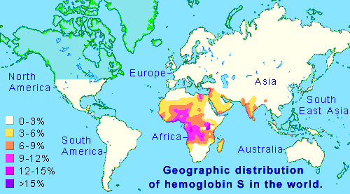 In Äquatorialafrika sind 25–40 % der Bevölkerung heterozygote Merkmalsträger. Die Häufigkeit des Defekts nimmt mit dem Abstand zum Äquator deutlich ab. Bei der schwarzen Bevölkerung Amerikas liegt die Häufigkeit nur noch zwischen 5 und 10 %. Dieses Phänomen lässt sich dadurch erklären, dass heterozygote Merkmalsträger eine relative Resistenz gegen Malaria besitzen – ein Umstand, der in Malariagebieten einen deutlichen Selektionsvorteil darstellt. In gemäßigten Breiten ist der Selektionsvorteil aufgrund der fehlenden Malaria nicht wirksam. Wenigstens ein wenig Gutes hat diese Erkrankung am Ende also doch.