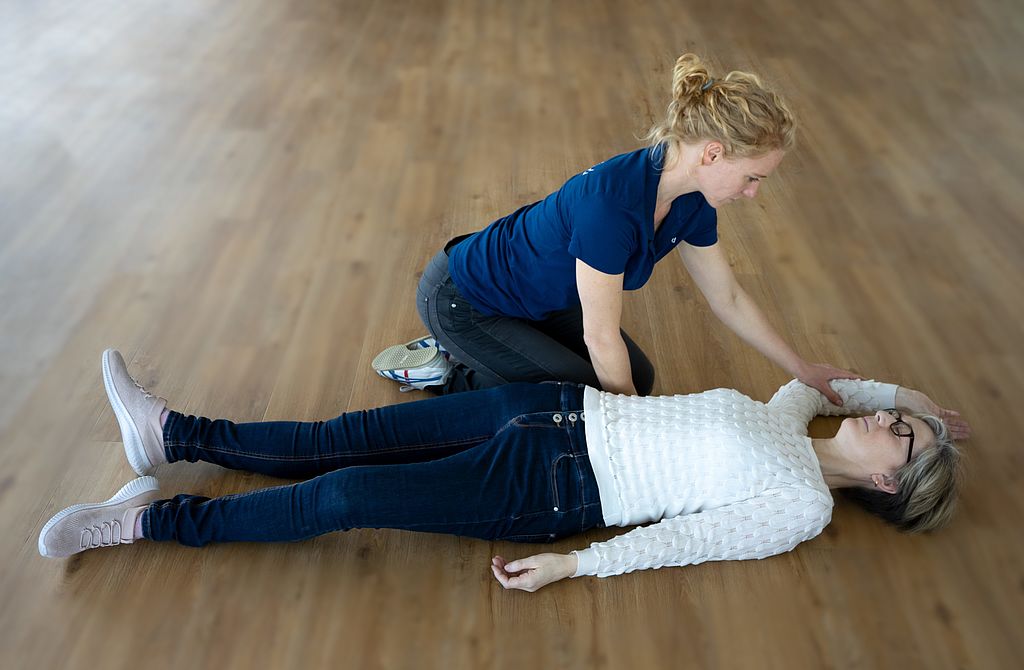 - Wiederhole diese Punkte bis die verunfallte Person wieder eigenständig atmet oder ein Arzt eingetroffen ist.